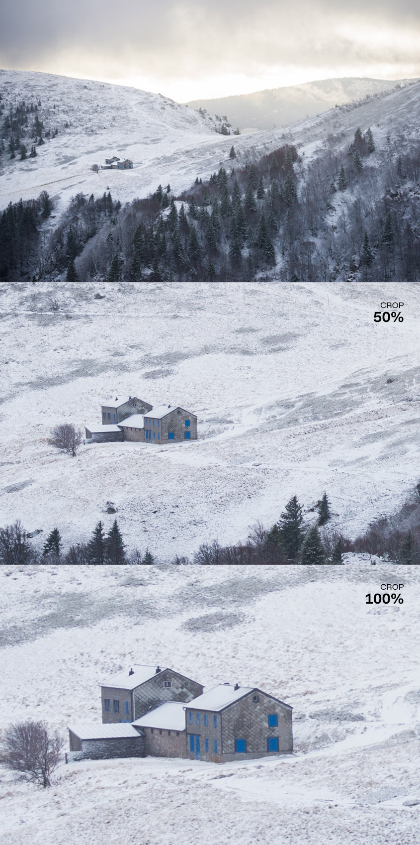 À noter : Les images ci-dessous ne présentent aucune correction de l'objectif, aucune amélioration de la netteté ou encore du microcontraste. Les seules corrections sont apportées à la température de couleur (la balance des blancs en hiver me joue des tours).