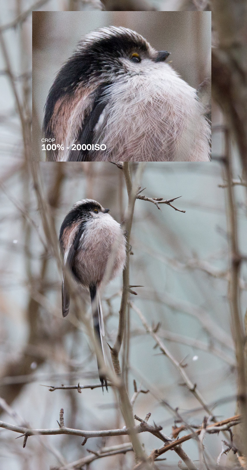 Tous les éléments sont rassemblés pour mettre en difficulté le Tamron SP 150-600mm F/5-6.3 VC USD, un manque cruel de lumière d'où les 2000 ISO, une petite bestiole particulièrement vive et une prise de vue à main levée. Vous jugerez par vous-même, mais pour moi le job est très bien fait ! Le crop à 100 % nous montre bien une image un peu molle, mais à 2000 ISO… Que demande le peuple ?